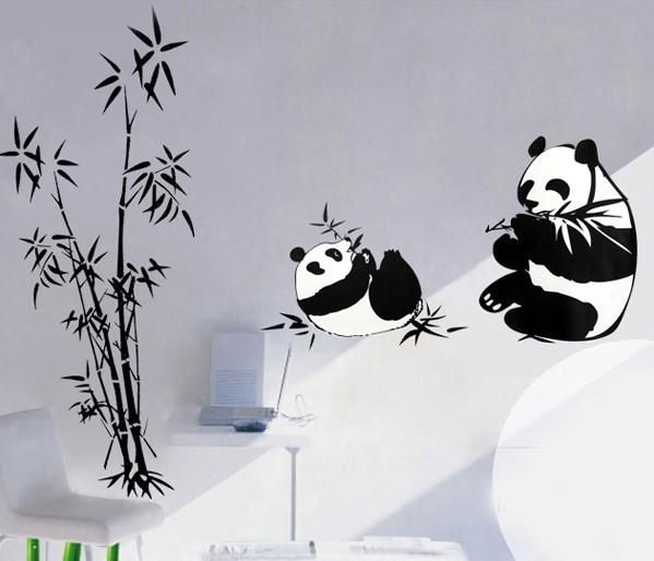 High Quality Panda Wall Decals Cartoon Roaming In Bamboo Home Decor Stickers Panda Removable Pvc Stickers Art Wall Decor Free Shopping Wall Decals