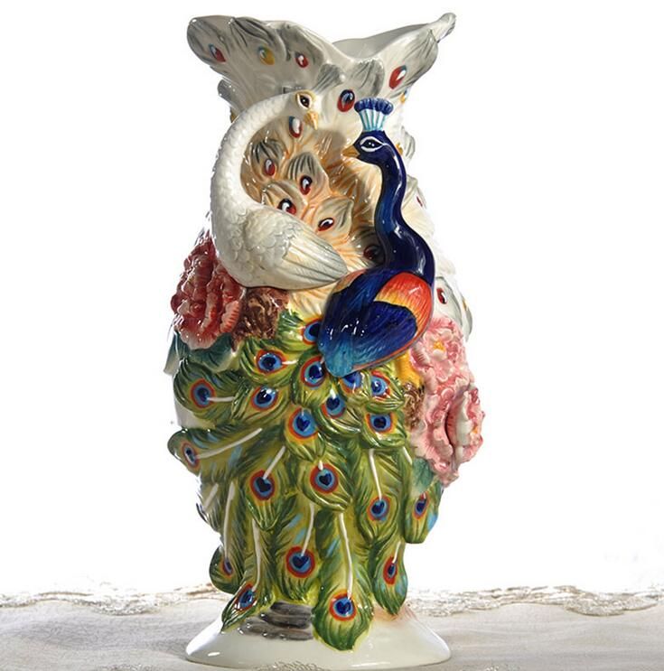 2019 Ceramic Creative Peacock Rose Flowers Vase Pot Home Decor Crafts Room Wedding Decorations Handicraft Porcelain Figurines From Dong1226 127 63