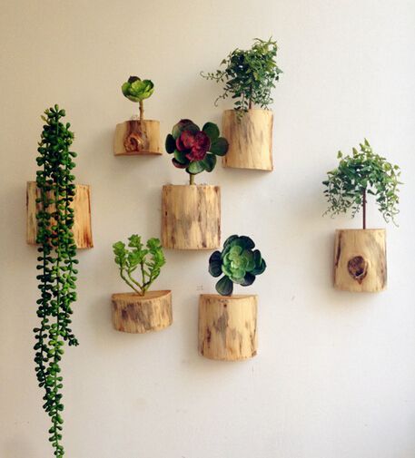 Wood Block Flower Vases Wall Flower Pots Planters Home Decoration New Creative Design Wedding Decor Natural Color Shape Zakka Vases Ceramic Vases
